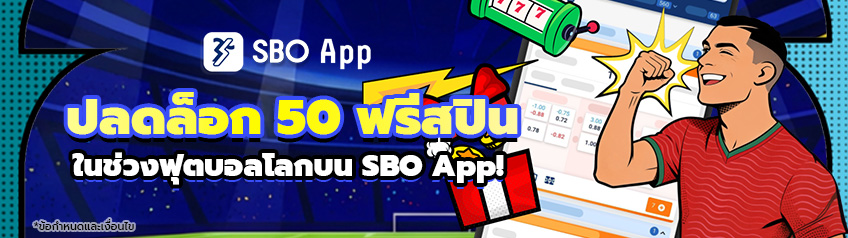 - ฟรีสปิน 50 ครั้งจะเพิ่มไปยังบัญชี SBO ของคุณภายในวันถัดไป