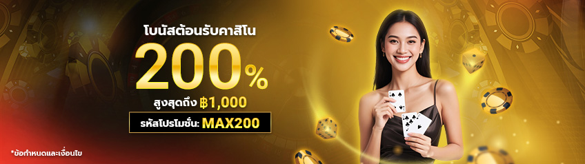 - เพื่อเข้าร่วมโปรโมชั่น สมาชิกจะต้องกรอกรหัสโปรโมชั่น MAX200 ในหน้าลงทะเบียน