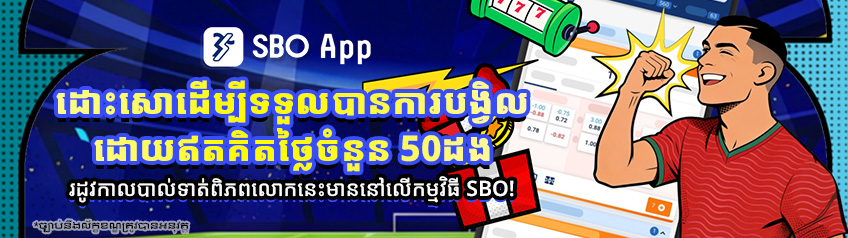 ដំឡើងកម្មវីធី SBO App ហើយដាក់ការភ្នាល់ជាលើកដំបូងរបស់អ្នកដើម្បីទទួលបានការបង្វិលឥតគិតថ្លៃចំនួន 50