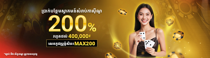 ប្រាក់បន្ថែមស្វាគមន៍ 200% សំរាប់កាស៊ីណូ