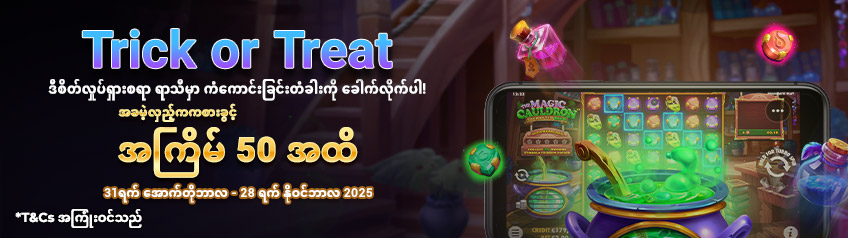 - TRICK ကို ရရှိသော ကစားသမားများသည် အခမဲ့လှည့်ကစားခွင့်အကြိမ် 50 အထိ ရရှိနိုင်ရန် သတ်မှတ်ထားသော စိန်ခေါ်မှုကို ပြီးဆုံးအောင် လုပ်ဆောင်ရပါမည်။