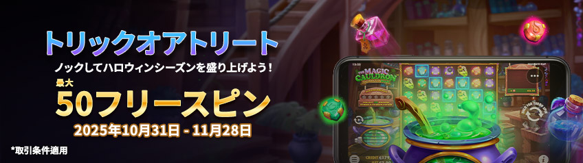 - トリックを受け取ったプレイヤーは、50フリースピンが貰えるようにスプーキーチャレンジを達成する必要があります。