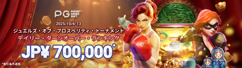 毎日PG Softのゲームでプレイして、賞金最大JP¥ 700,000 相当を勝ち取れるチャンス!