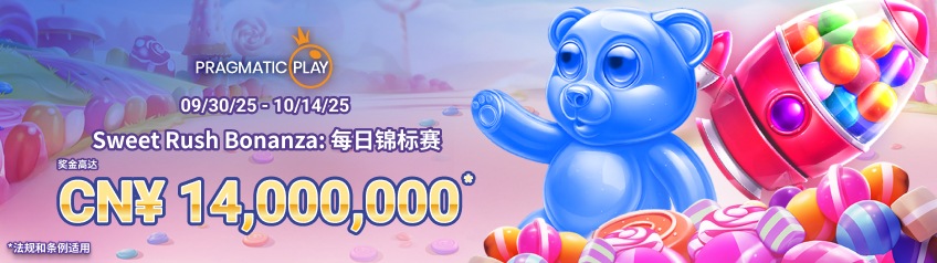 立即加入PP Sweet Rush Bonanza:每日锦标赛,冲击高达 CN¥ 14,000,000的现金总奖池,大奖等你来赢!