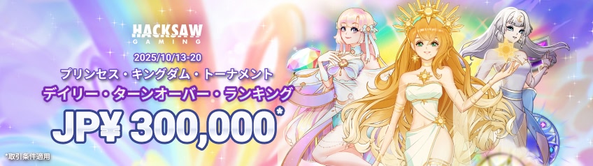 毎日スピンして勝利!Hacksaw Gaming をプレイすると、最大 JP¥ 300,000相当の賞金獲得チャンス。