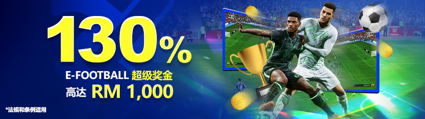 - 完成首次存款后,便可获得130%欢迎红利奖金高达 RM 1,000,为您的电子足球开局加速助力。