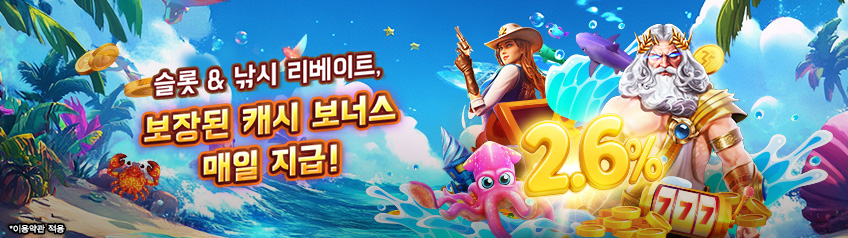 2.6 % 언리미티드 일일 슬롯 및 낚시 캐시 리베이트
