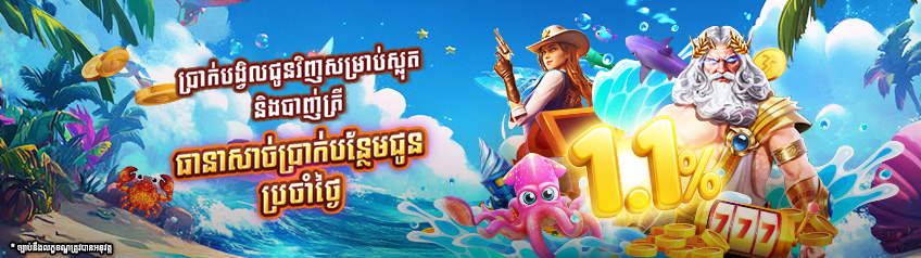 1.1% ការបង្វិលប្រាក់សងជូនវិញប្រចាំថ្ងៃគ្មានដែនកំនត់សំរាប់ស្លុតនឹងបាញ់ត្រី