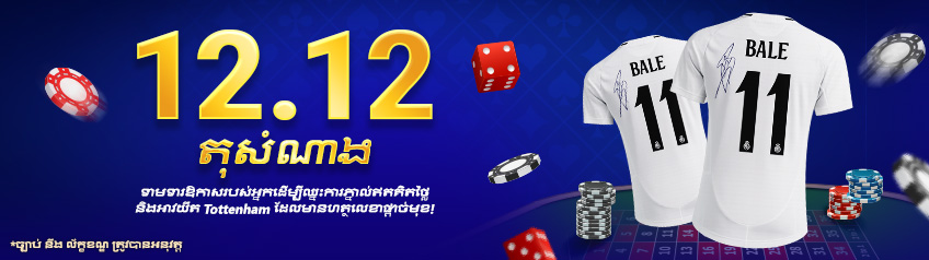 - អ្នកលេងដែលដាក់ភ្នាល់អប្បបរមាលើហ្គេម SBO កាស៊ីណូផ្សាយផ្ទាល់ ក្នុងអំឡុងពេលប្រូម៉ូសិនអាចទទួលបានប្រាក់ភ្នាល់ឥតគិតថ្លៃ និងមានឱកាសឈ្នះអាវ Tottenham ដែលបានចុះហត្ថលេខាដោយ Gareth Bale អាស្រ័យលើលក្ខខណ្ឌ។