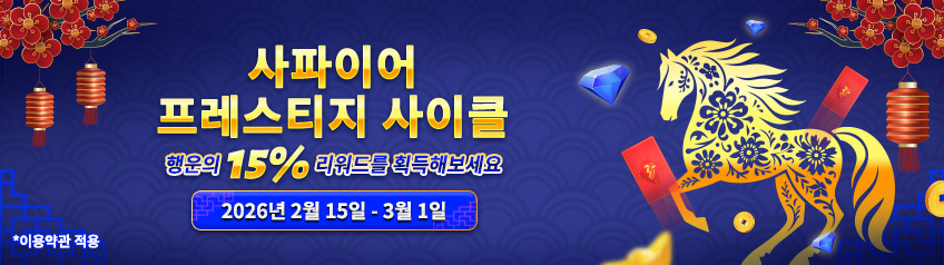 설날을 기념하여, 사파이어 회원 전용으로 매 사이클마다15% 럭키 보너스를 제공합니다.