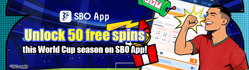 Download the SBO App and place your first bet to get 50 free spins.