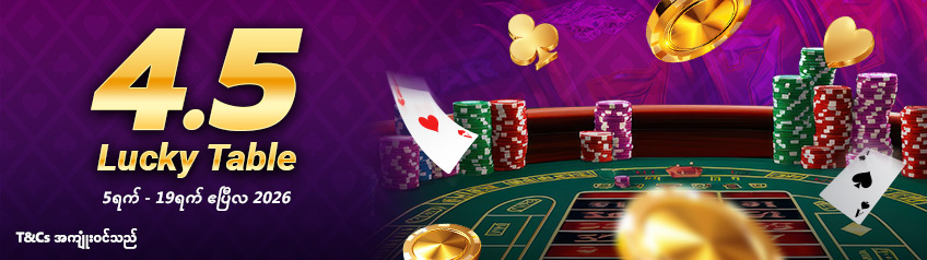 - ပရိုမိုးရှင်းကာလအတွင်း မည်သည့် SBO တိုက်ရိုက်ကာစီနို ဂိမ်းတွင်မဆို အနည်းဆုံး MMK 20,000 လောင်းကြေးဖြင့် သင်ရွေးချယ်ထားသော ဆုလာဘ်ကို ရယူလိုက်ပါ။