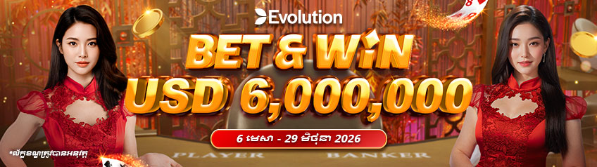 ចូលរួម Evolution Bet & Win ហើយឈ្នះប្រាក់រង្វាន់ដ៏ធំរបស់អ្នក!