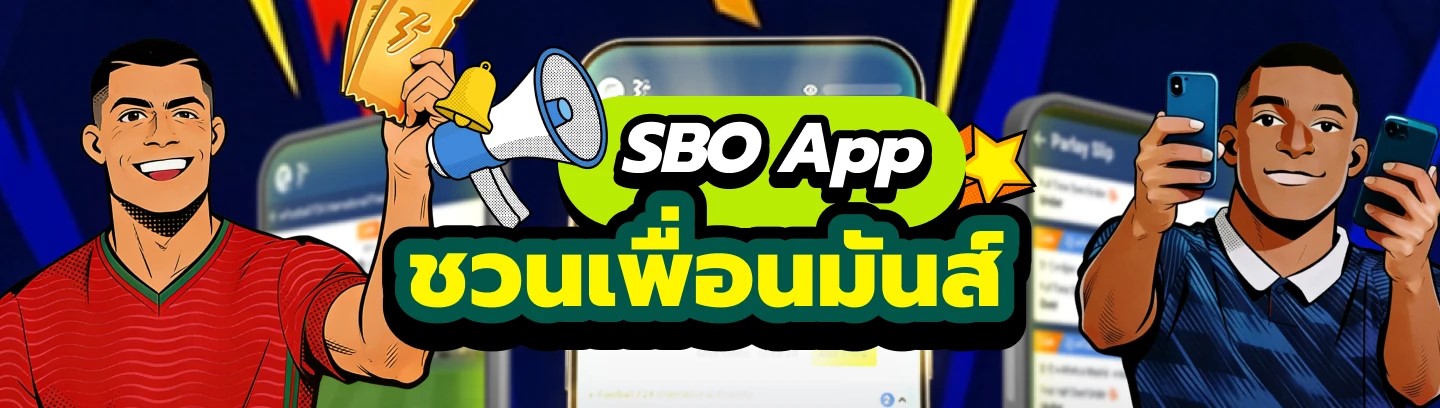 ร่วมฉลองความมันส์ไปกับ SBO App! แนะนำเพื่อนของคุณเพื่อรับบัตรกำนัลได้ไม่จำกัด อย่าพลาดข้อเสนอนี้มีช่วงเวลาจำกัด!